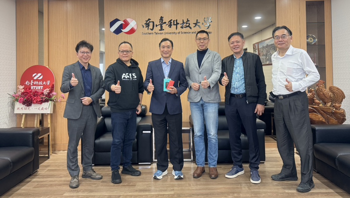 新北綠盟理事長陳士章偕同亞瑞仕國際陳勁宇董事長與總經理陳建璋、舊金山灣區台灣商會會長張家豪、前高雄市客委會主委陳志勇,拜會南台科大黃能富校長,洽談農業AI及碳權合作事宜。圖/新北市綠色能源產業聯盟
